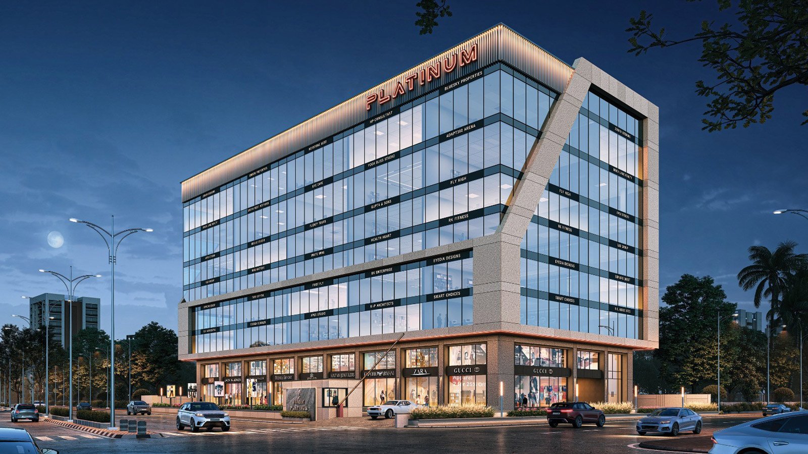- Configuration: Office Spaces (887– 1,695 sq. ft.) & Retail Shops (557– 2,343 sq. ft.)